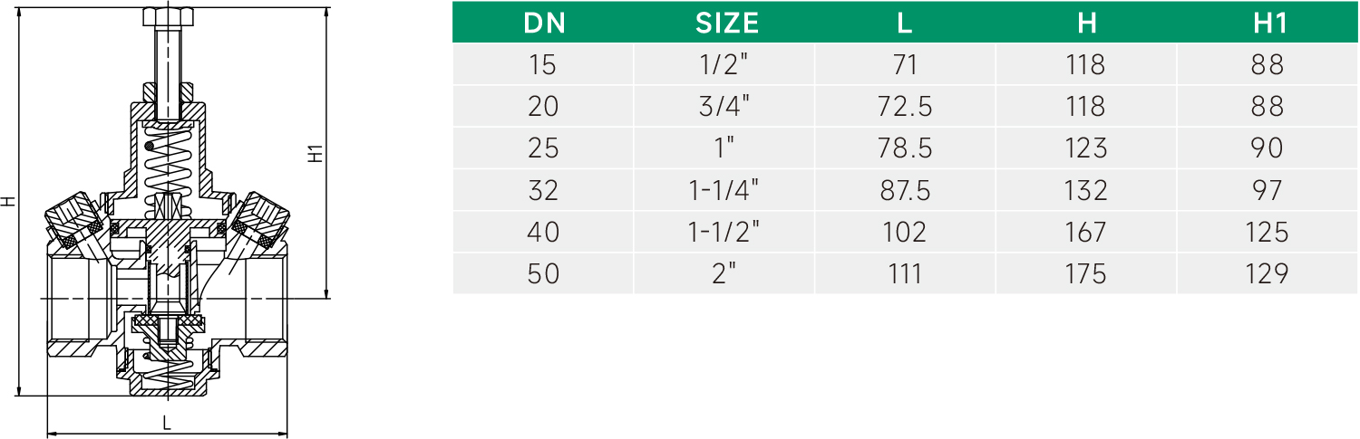 3. 工作温度:0°C≤T≤60°C出口压力调节范围:当进口压力为1.0MPa时,出口压力为0.15MPa-0.45MPa。当进口压力小于1.0MPa时出口压力相应降低。