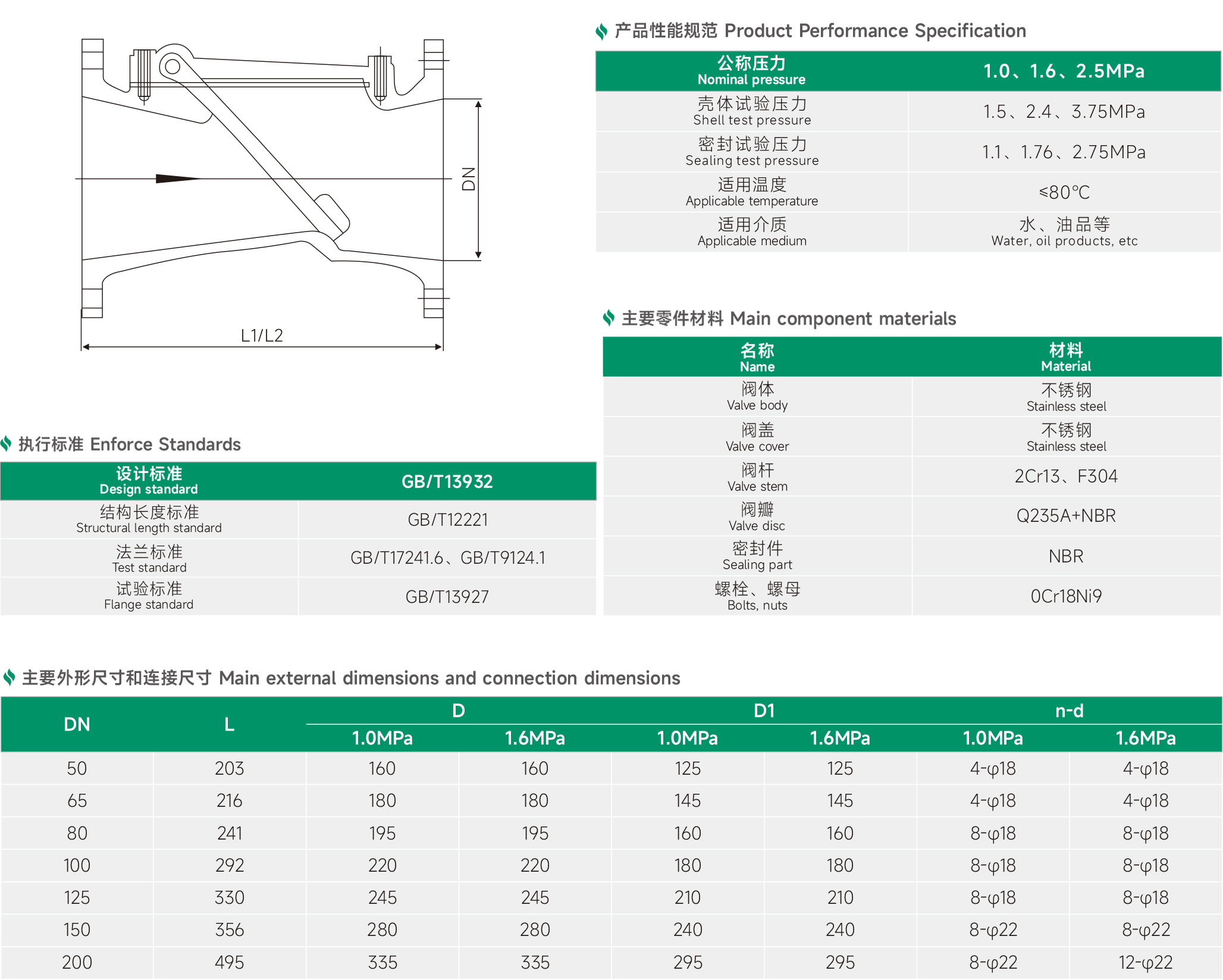 橡胶瓣逆止阀主要由阀体、阀盖、阀瓣组成,其中橡胶瓣由钢板作承压件及强化尼龙布做衬底,外层采用热硫化整体包胶技术制成,阀瓣开关灵活,无卡阻,使用寿命长。