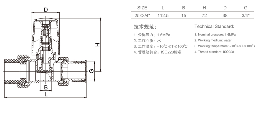 [840] 双密封精品PP-R直式温控阀(镀青古)