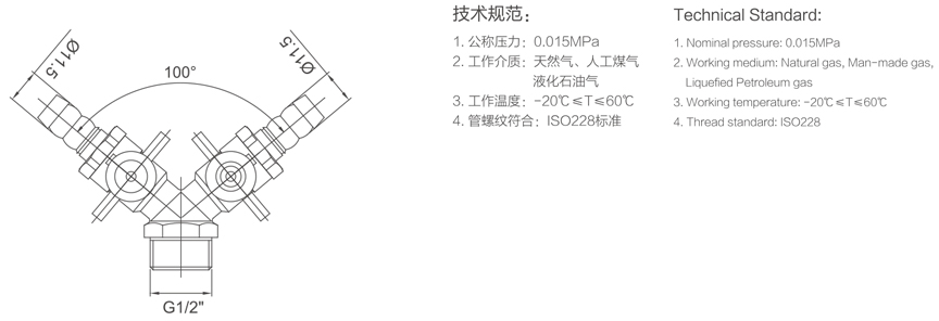 [915] 外牙蝶柄双联燃气阀