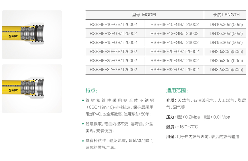 燃气输送用不锈钢波纹软管(户内可埋型)