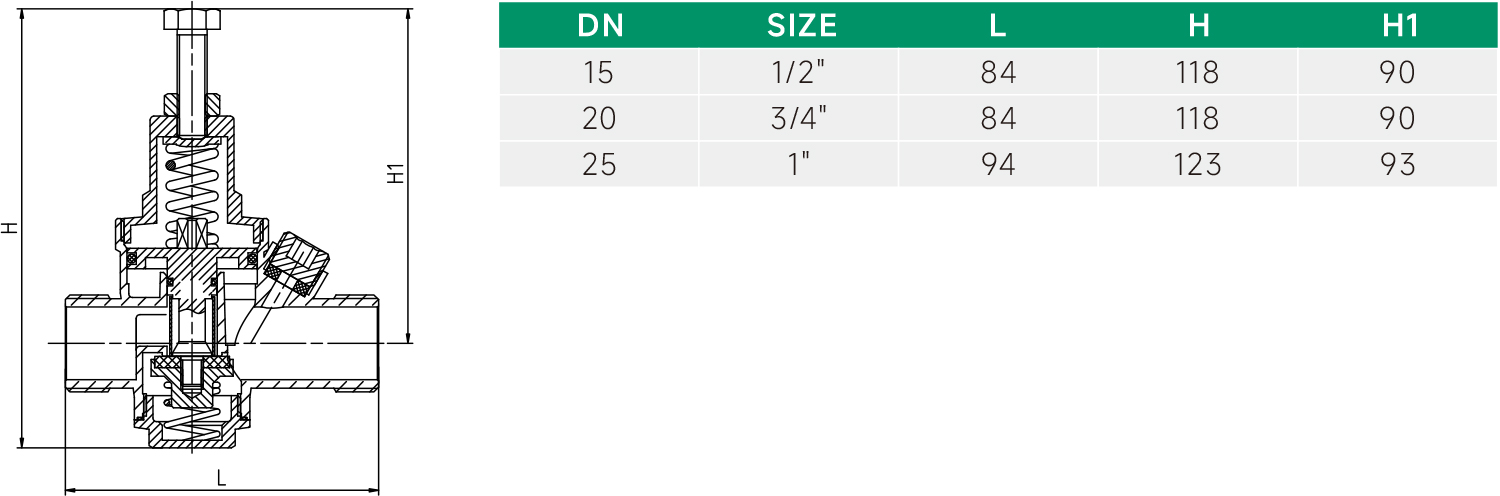 3. 工作温度:0°C≤T≤60°C出口压力调节范围:当进口压力为1.0MPa时,出口压力为0.15MPa-0.45MPa。当进口压力小于1.0MPa时出口压力相应降低。