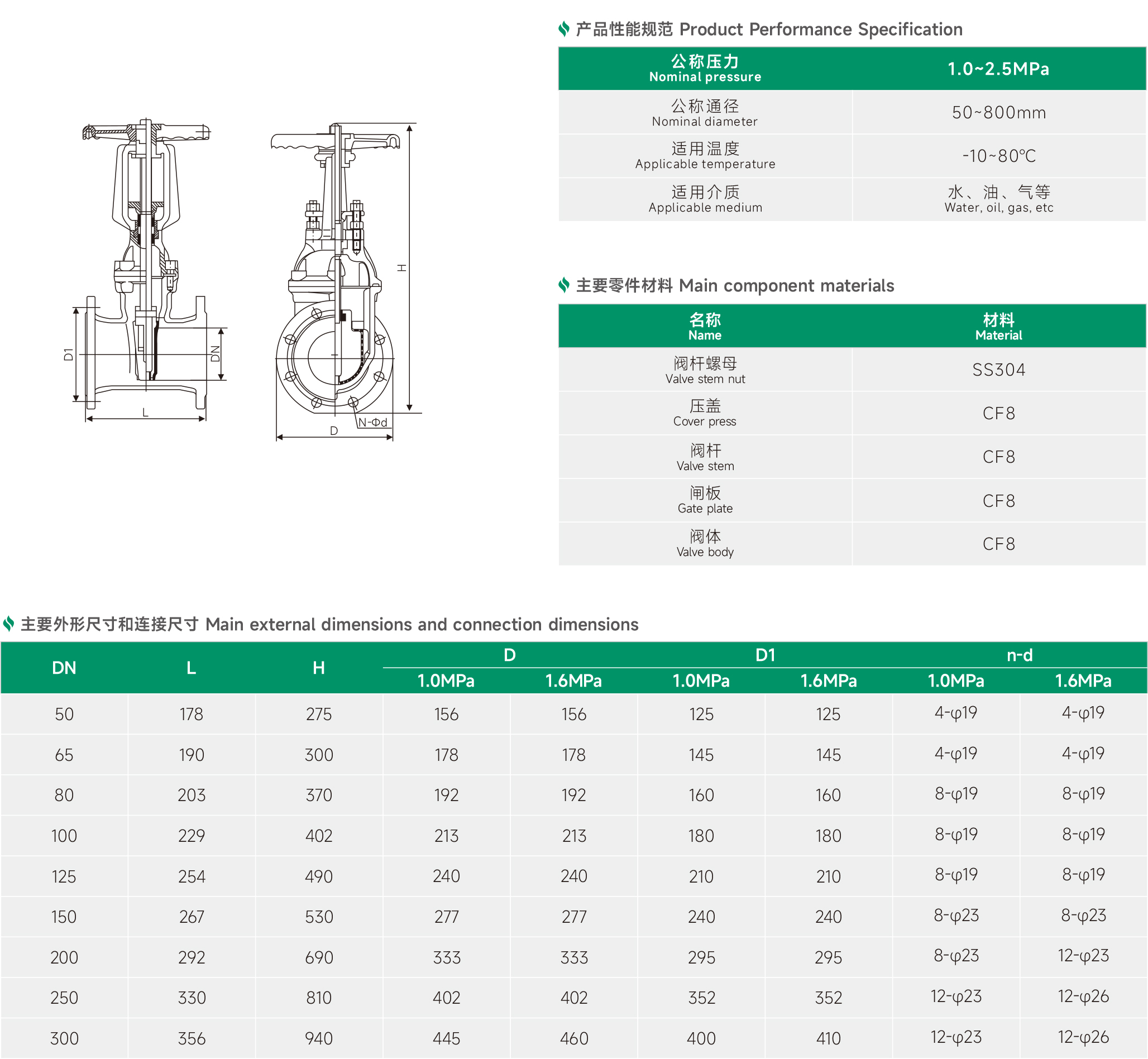 [Z41W-10/16P] 不锈钢明杆硬密封闸阀