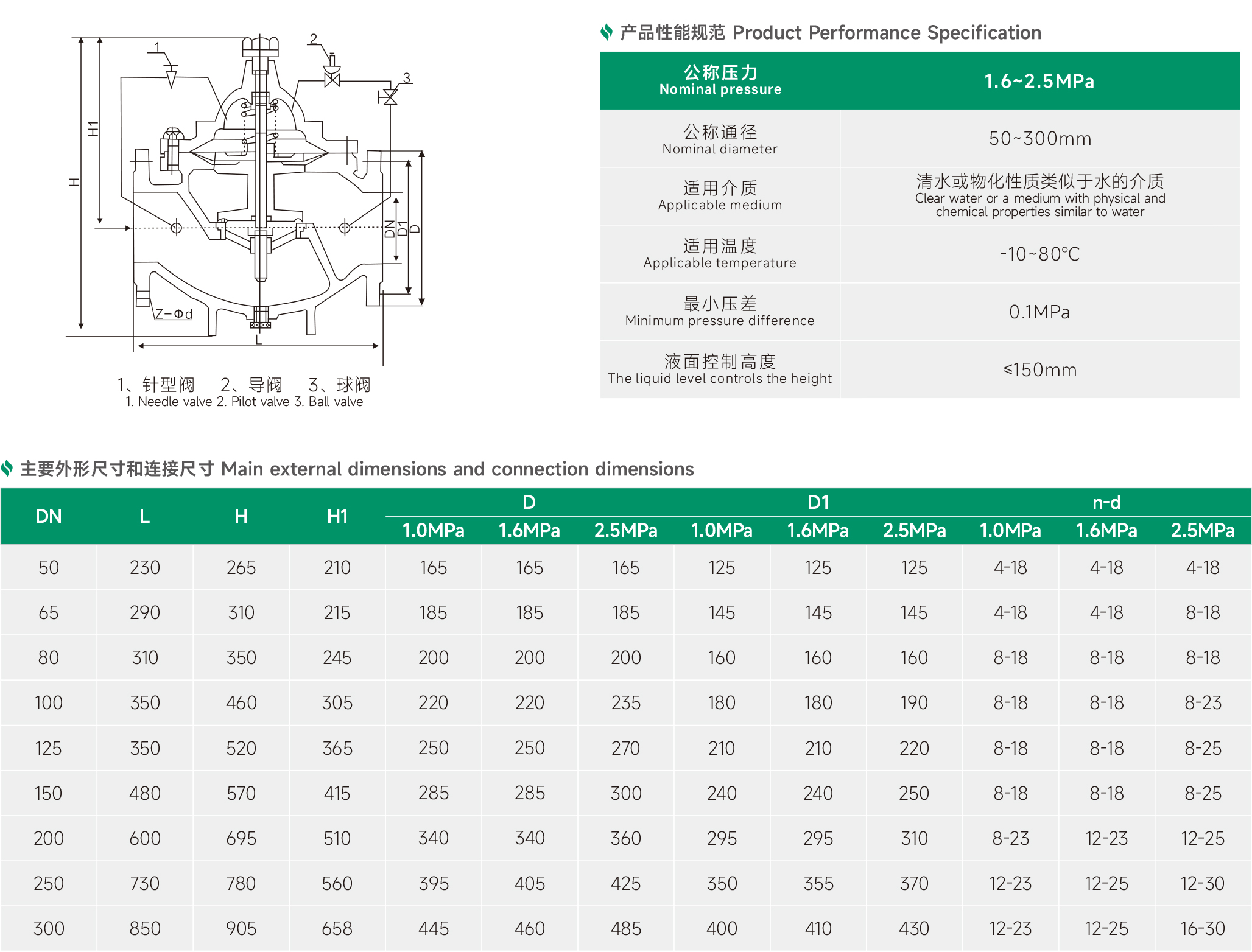 其工作原理是,当主阀进出口间压差变化时,接管A与接管B间压差发生变化,此变导阀的开度。