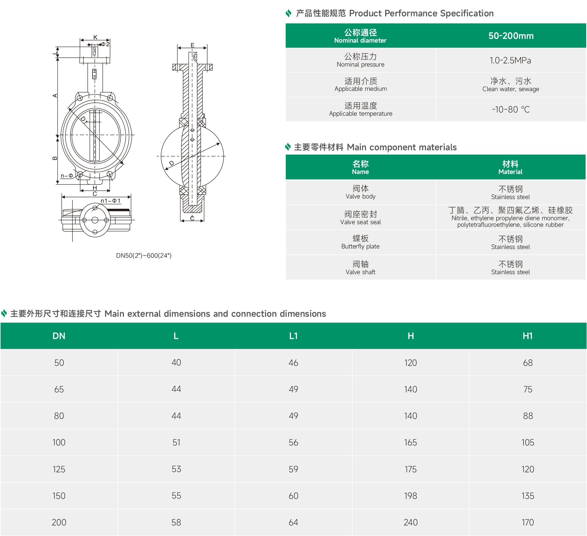 适用于食品、医药、轻纺、造纸等给排水管道上起调节流量和截流介质的作用。